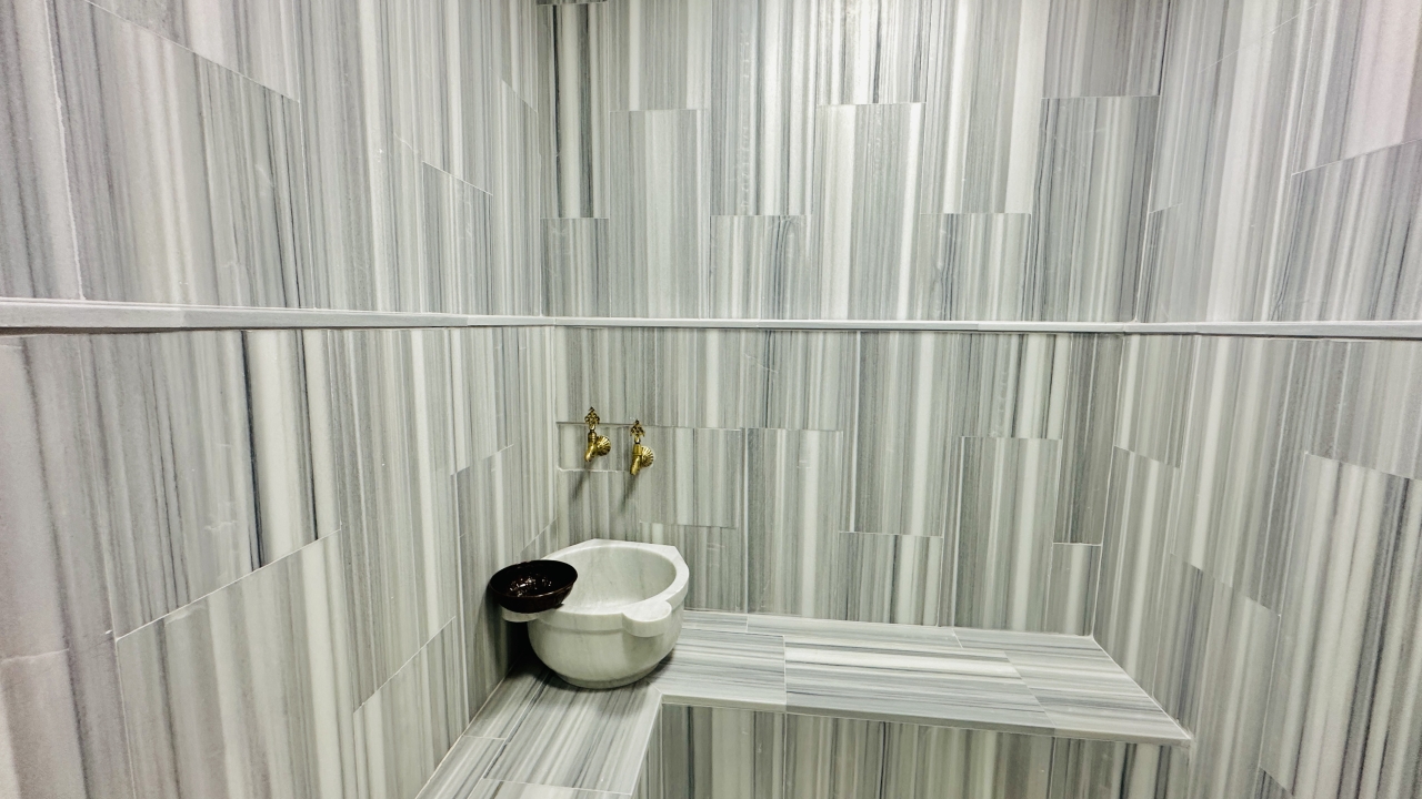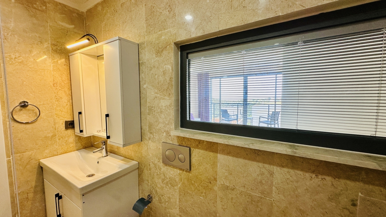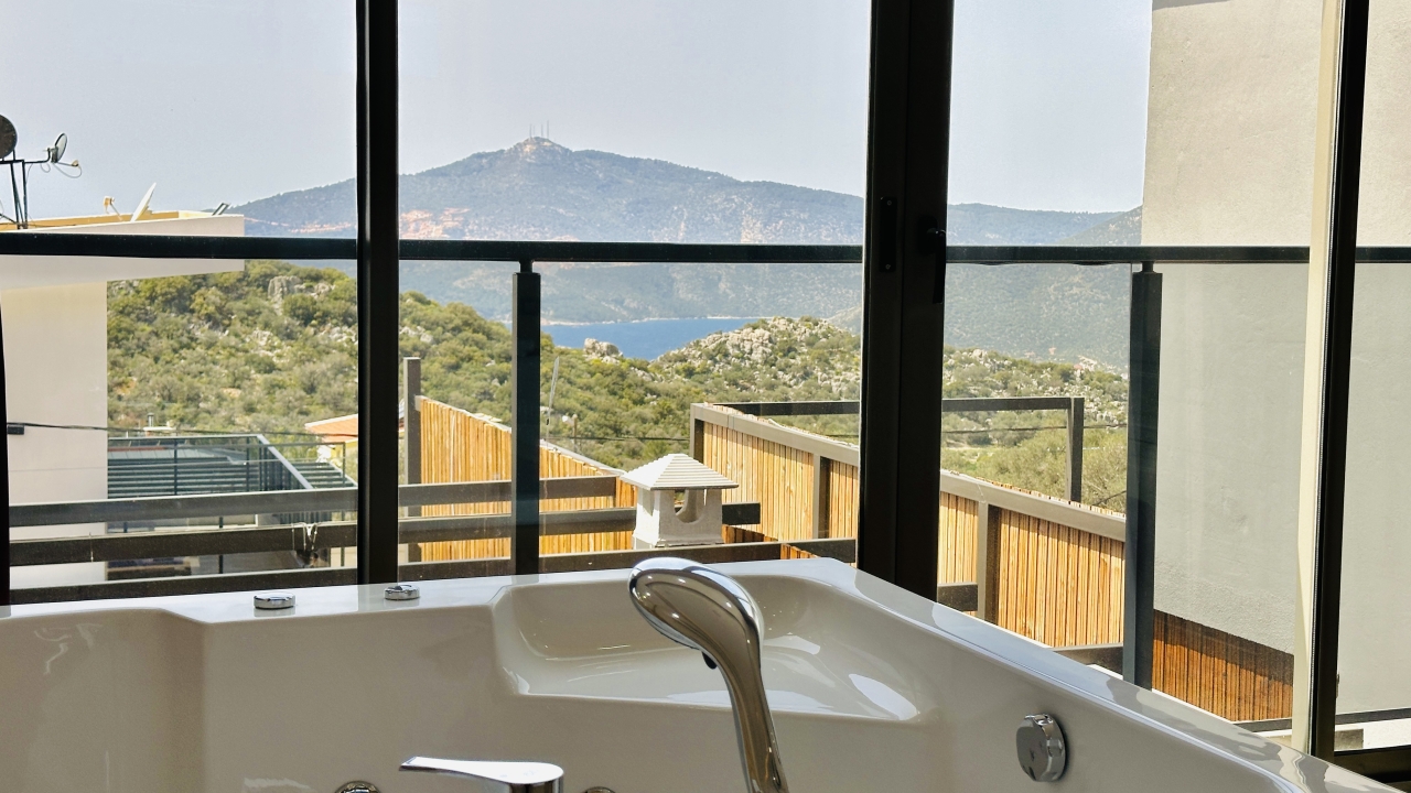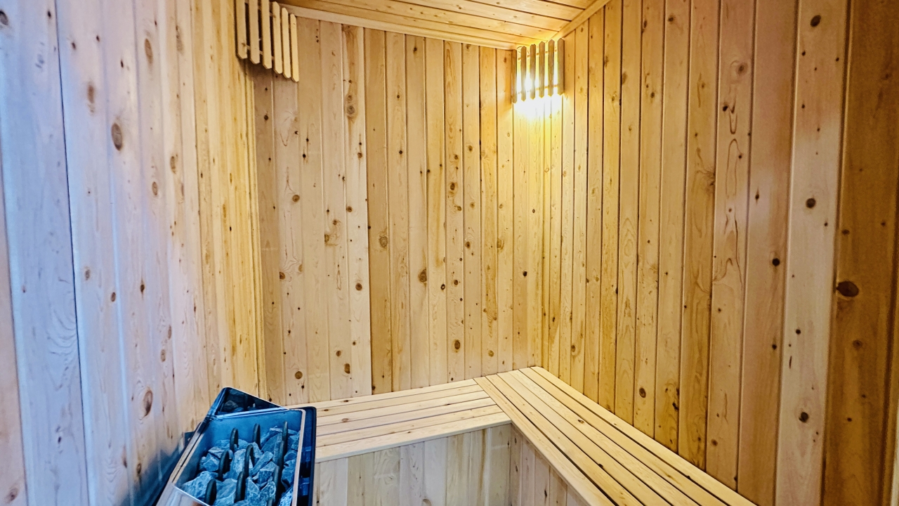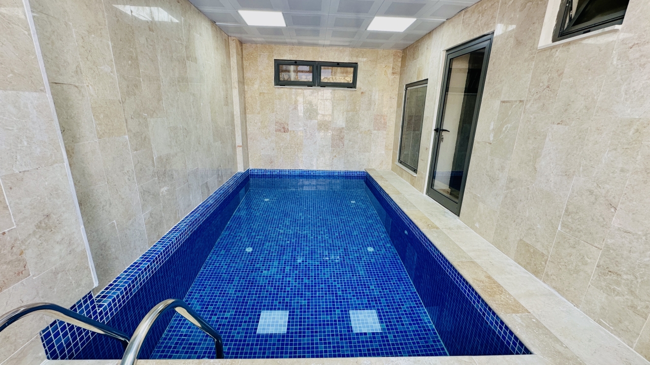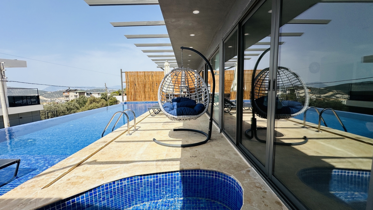 Villanın en dikkat çekici özellikleri arasında kapalı ısıtmalı havuz, sauna ve Türk hamamı yer alır. Zemin katta bulunan bu olanaklar, özellikle dört mevsim tatil yapmak isteyen misafirler için büyük avantaj sağlar. Havuz alanında ayrıca sığ havuz bölümü de bulunur ve bu alan çocuklu aileler için güvenli bir kullanım sunar. Geniş havuz terası, güneşlenme alanı ve manzaraya karşı keyifli vakit geçirebileceğiniz oturma alanlarıyla desteklenmiştir.