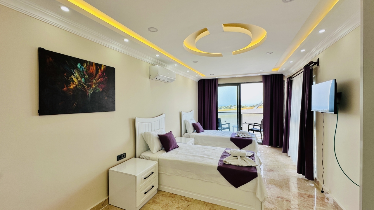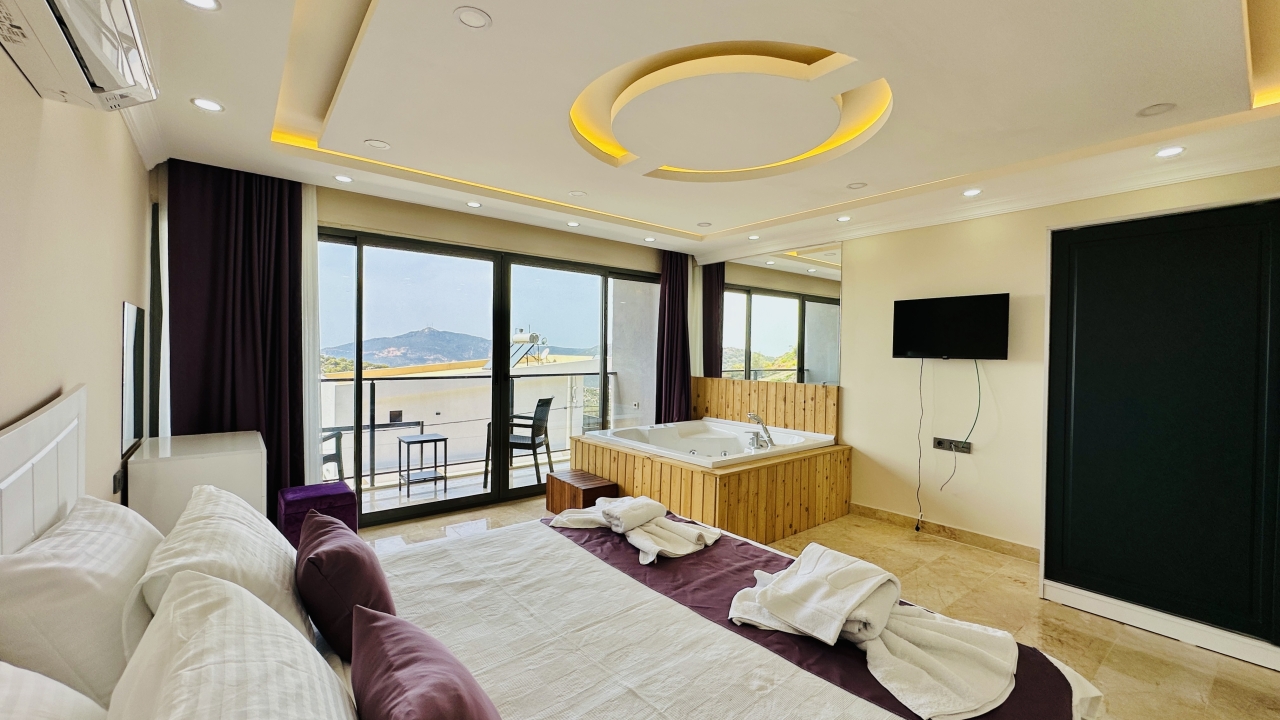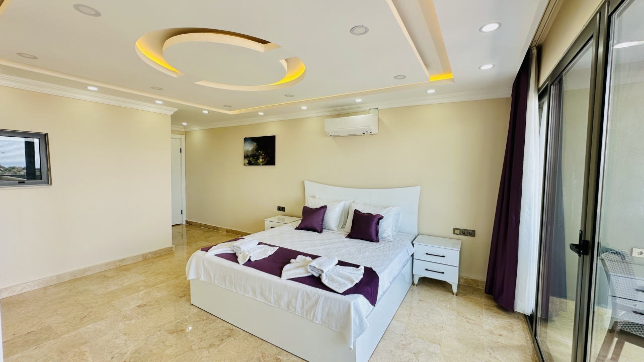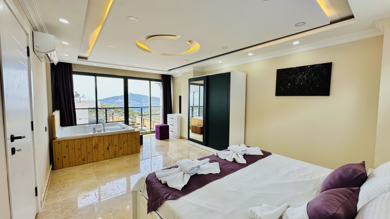 Beş yatak odasının dört tanesinde çift kişilik yatak, bir tanesinde ise iki adet çift kişilik yatak bulunmaktadır. Her odanın ferah yapısı ve modern dekorasyonu, misafirlerin konforunu artırır. Villada bulunan çift jakuzi, tatilinize keyif ve rahatlama katan ayrıcalıklı bir özellik olarak öne çıkar.