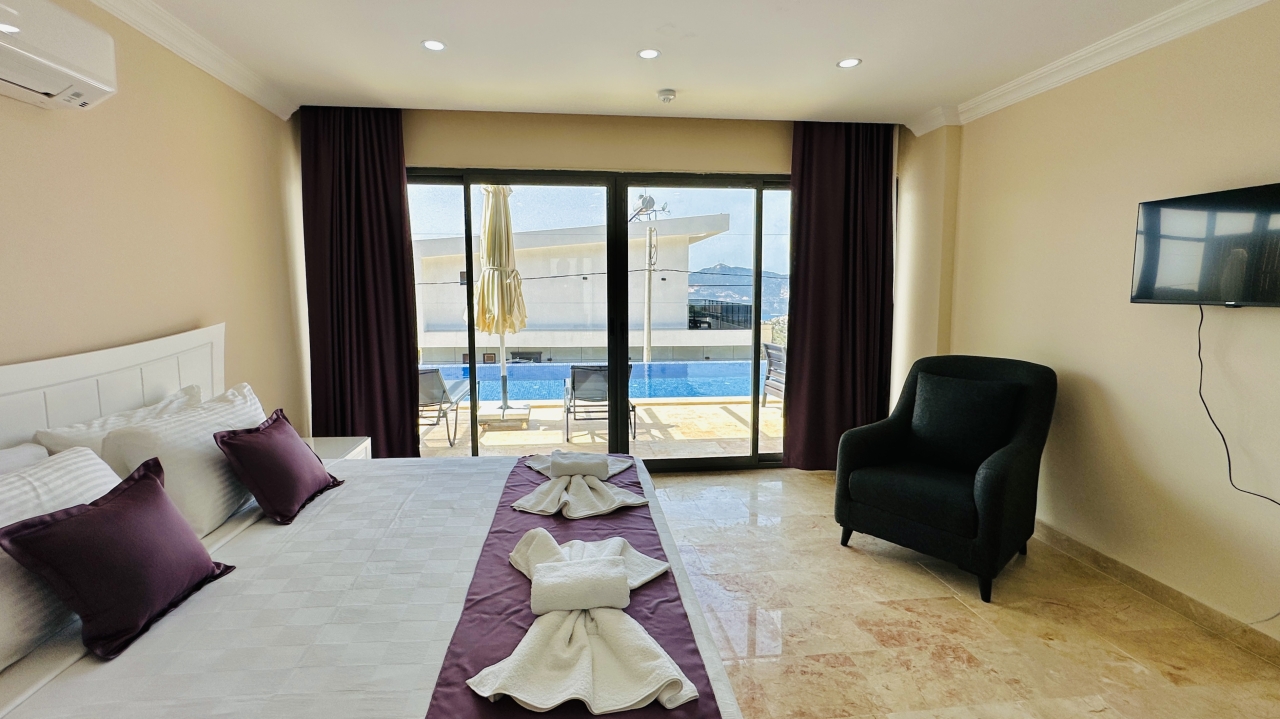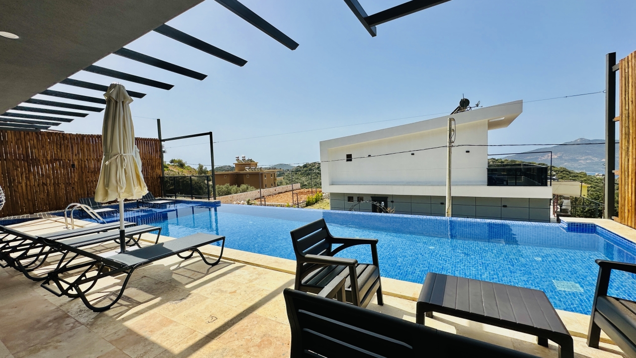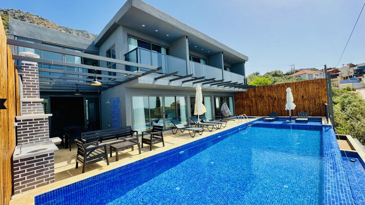 Kalkan’ın Kördere bölgesinde yer alan Villa Grand Emora 1, geniş ailelerin ve kalabalık arkadaş gruplarının rahatlıkla konaklayabileceği, beş yatak odalı ve on kişilik kapasiteye sahip modern bir tatil villasıdır. Doğa ile iç içe, yüksek bir konumda yer alması sayesinde Kalkan’ın eşsiz manzarasını seyretme imkânı sunan villa, aynı zamanda merkeze yakın olmasıyla da pratik ve keyifli bir tatil arayan misafirler için ideal bir seçenektir. Korunaklı havuz alanı, mahremiyete önem veren misafirlerin kendilerini güvende hissetmesini sağlar ve villayı muhafazakâr aileler için de uygun bir konaklama alanı haline getirir.