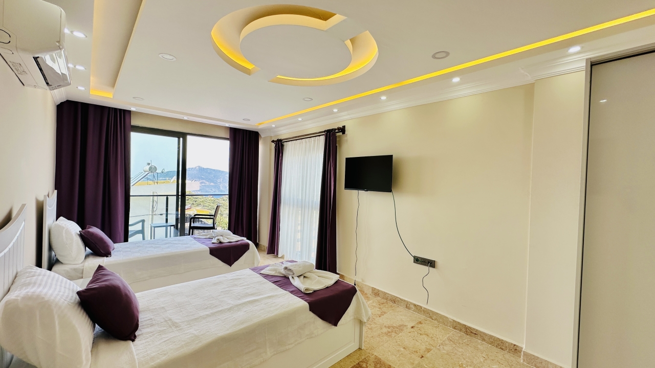 5. Yatak Odası :Tek kişilik iki adet yatak, elbise dolabı, komodin, TV, klima, bulunmaktadır.