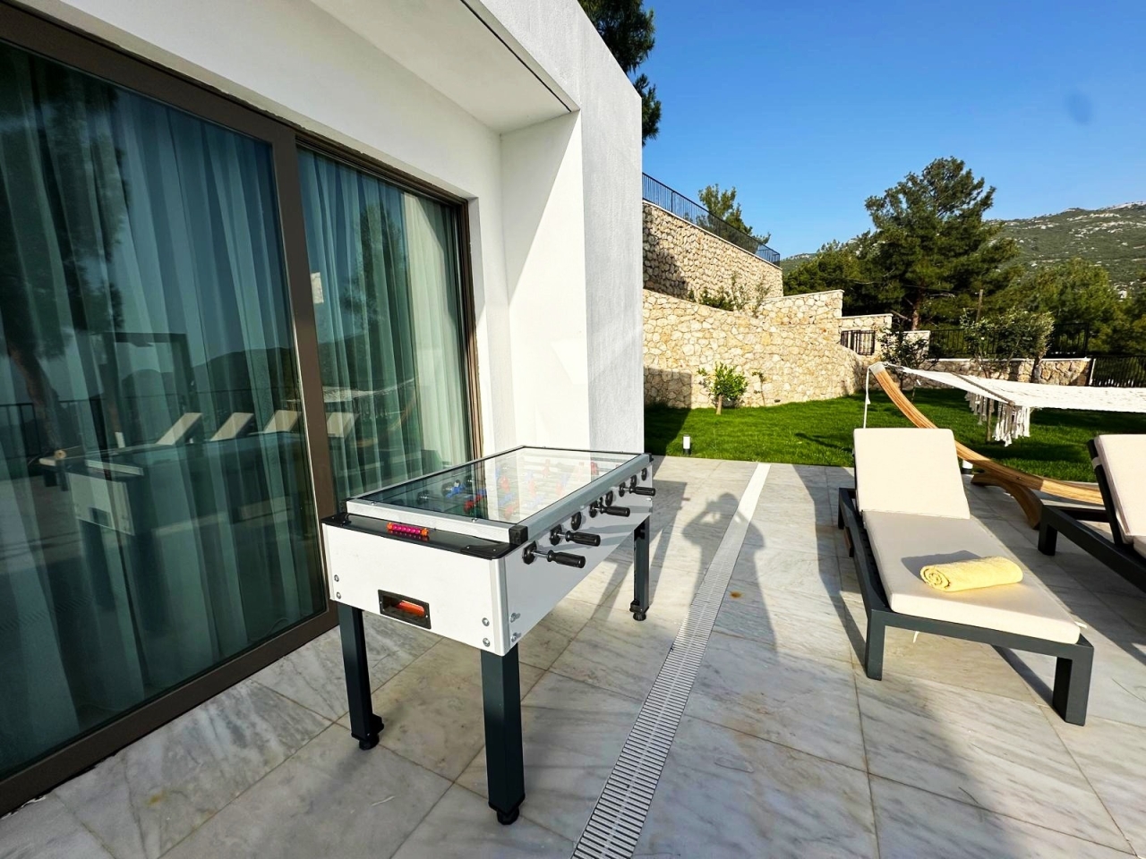 Havuz Ve Bahçe : Özel yüzme havuzu, şezlong, şemsiye, sehpa, yemek masası, sandalyeler, mangal, hamak, tenis masası ve langırt masası bulunmaktadır.